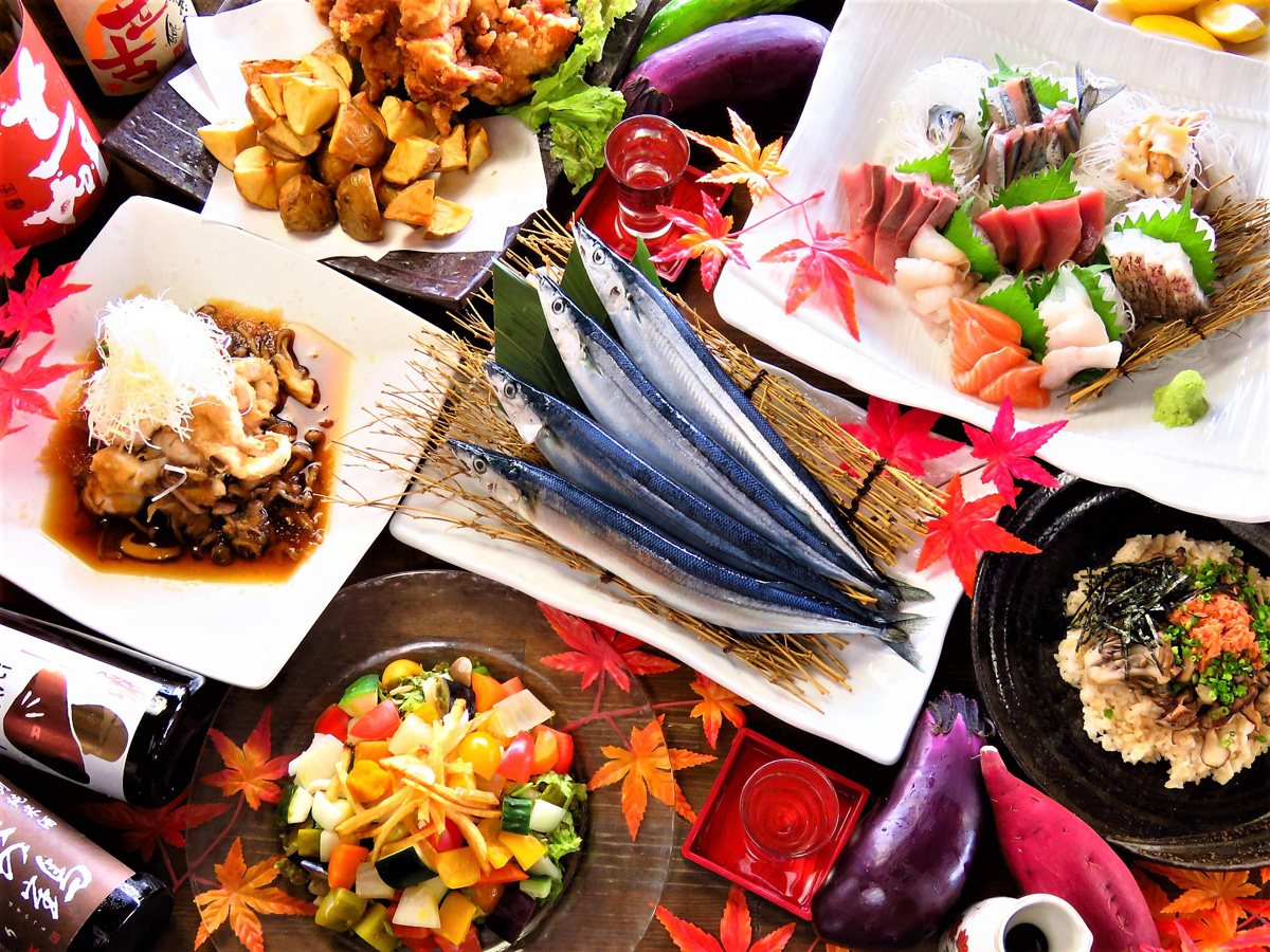 料理はお通しとして人数分提供される舟盛りはもちろん、道産食材を使ったもつ鍋や、ボリュームたっぷりの若鶏の半身揚げなども人気。半個室になったテーブル席や掘りごたつ席もあり、ゆったりくつろげます。また、大勢で楽しみたいときは、120分飲み放題付のコース料理(4980円~)もおすすめ。予算、料理内容の相談にものってくれますよ。