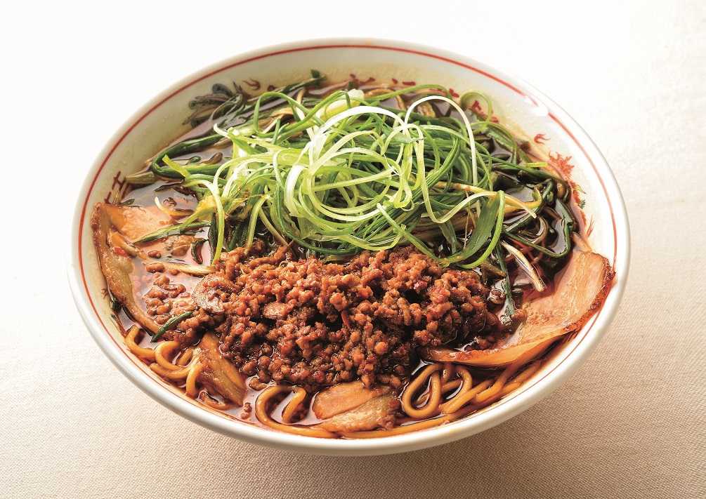 イートインにも限定メニューがそろいます。九条ねぎがたっぷり入った「新福菜館」の「九条ねぎ担々麺」1188円(1人前)は、各日30点限り。ねぎとミンチ、麺とのハーモニーをしっかりと味わって。