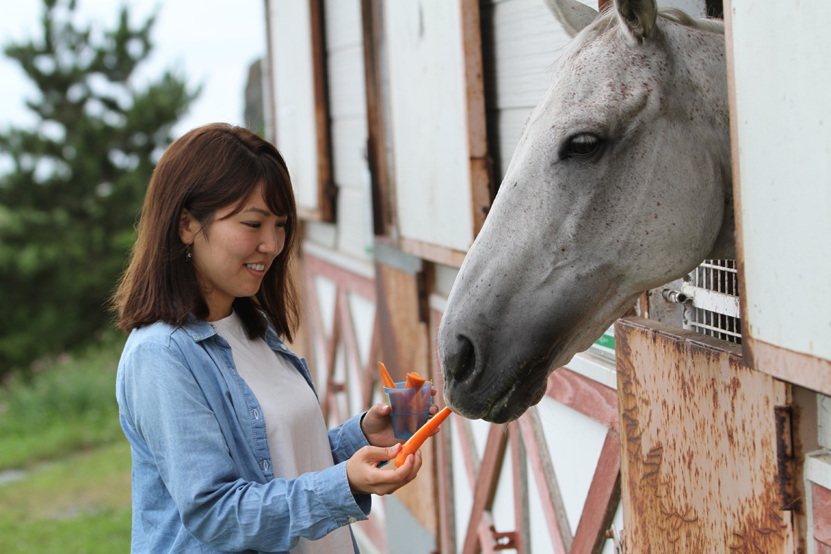 体験の後は、乗せてくれたお礼にニンジン(200円)をあげてみて。馬との絆も深まります。ブーツやヘルメットは貸出があり、手ぶらで行けちゃうのも嬉しいところ。空きさえあれば、事前予約なしでも乗馬可能なので、当日連絡してみるものありです。
