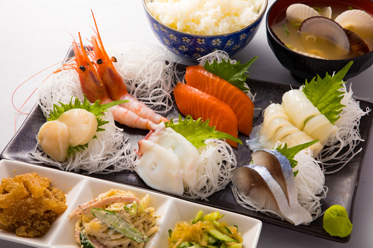 特に、その日一番の旬な素材を6品と3種類のお惣菜、魚介類がたっぷり入ったみそ汁が魅力の「旬のお刺身定食」1500円が大人気。追加で贅沢に単品の「真ほっけ」800円を頼んで、家族や友達とシェアするのも楽しいですよ。