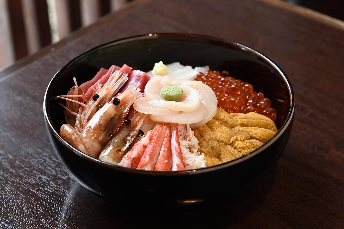炭炊き蒸し釜戸で炊いたご飯の上にウニ、イクラ、ホタテをのせた「元祖函館 巴丼」で知られる1956年創業の名物食堂。本店、支店がある函館朝市は午後2時頃までの営業なので、夕方以降に函館に到着したり、朝早い出発を予定している人は朝市に行けません。
