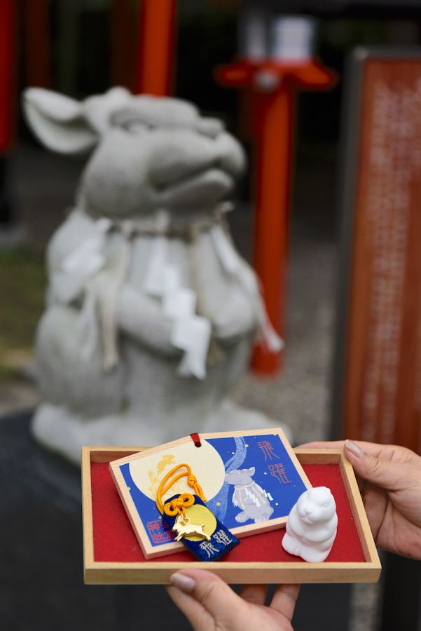 境内には小槌を振って祈る「開運小槌」や、体の気になる部分を撫でる「健康長寿小槌」、御神前の石像に触れて祈願する「神兎(なでうさぎ)」など縁起物もあるので、各所でご利益をいただきましょう。