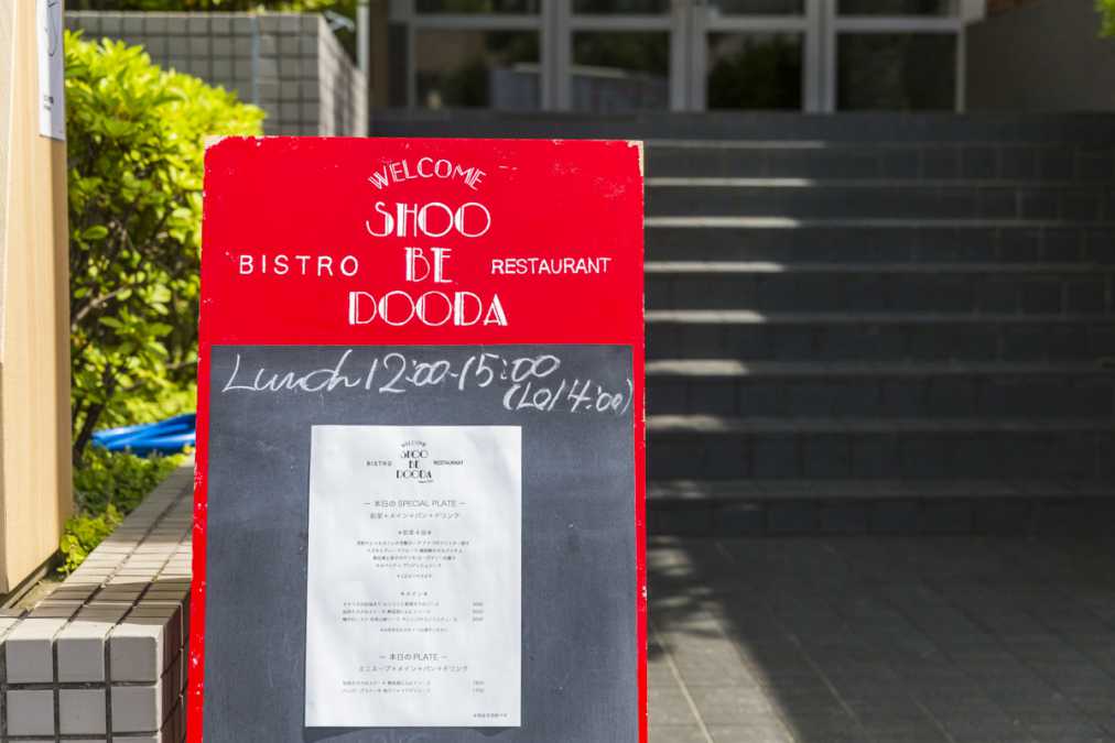江ノ電・由比ヶ浜駅から徒歩3分。「SHOOBEDOODA」は、感度の高いショップや飲食店が集まる注目のエリア、由比ケ浜通り沿いにあります。お店はマンションの1階というちょっとわかりづらいところにありますが、それも隠れ家的な雰囲気で素敵。赤いメニュー看板を目印に訪れましょう。