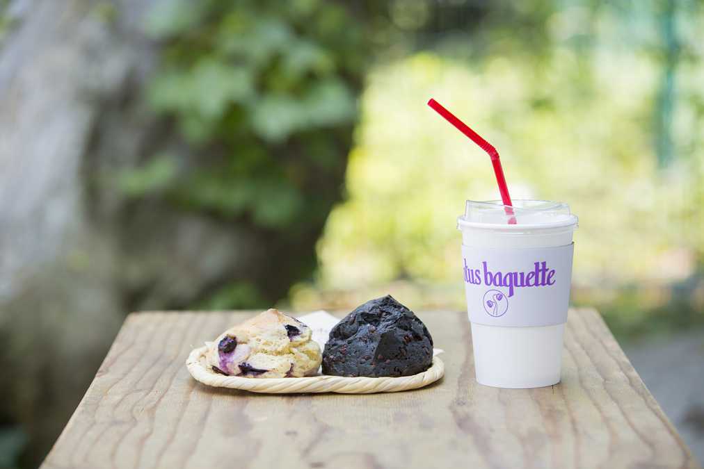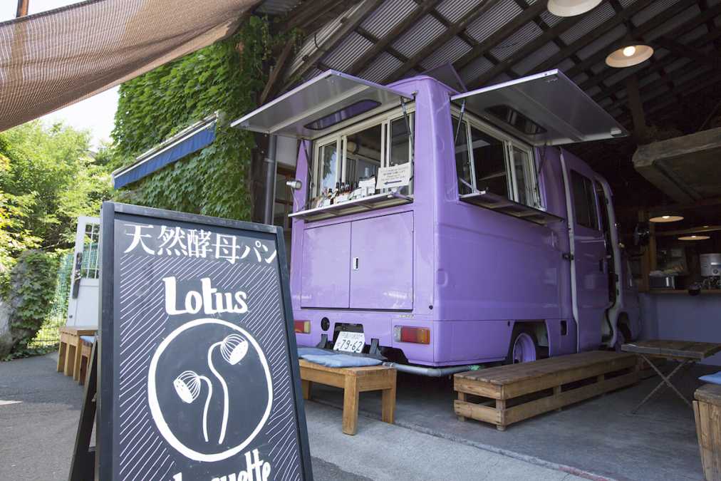 「BLUE BLUE YOKOHAMA」に併設されたベーカリーカフェ「YOKOHAMA LOTUS」は、買い物後に立ち寄りたいスポット。紫のワゴンカーが目印のお店では、天然酵母や有機素材を使用したおいしくて安心安全なパンが楽しめます。店内のほかに、外にもテーブル席やベンチが用意され、テイクアウトして食べることも可能。