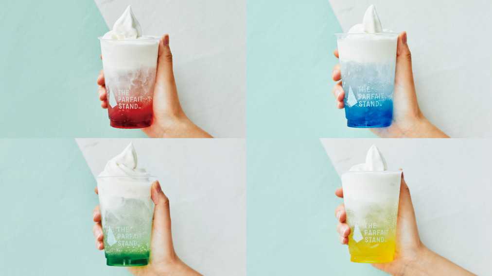ほかにも濃い青色が涼し気な「ブルーハワイ」、昔懐かしいメロンソーダさながらの「メロン」、爽やかなレモンスカッシュが暑さを吹き飛ばす「レモン」の4種のフレーバー(各399円)があります。どれもインスタ映え間違いなしの鮮やかさ!