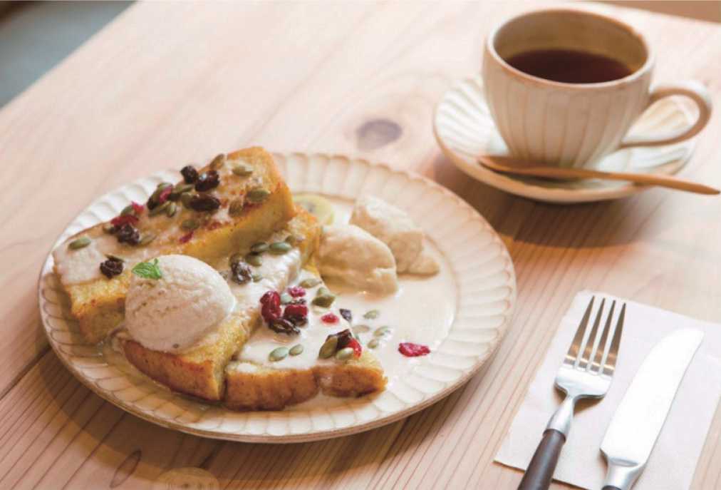 フレンチトースト(1944円)やパフェ(1080円)、ケーキ(810円〜)など、スイーツメニューも充実。フレンチトーストは、全粒粉入りの天然酵母パンを、豆乳と甘酒でしっとり焼き上げた看板メニュー。ヴィーガンスイーツなら、ダイエット中でも罪悪感がないかも!?