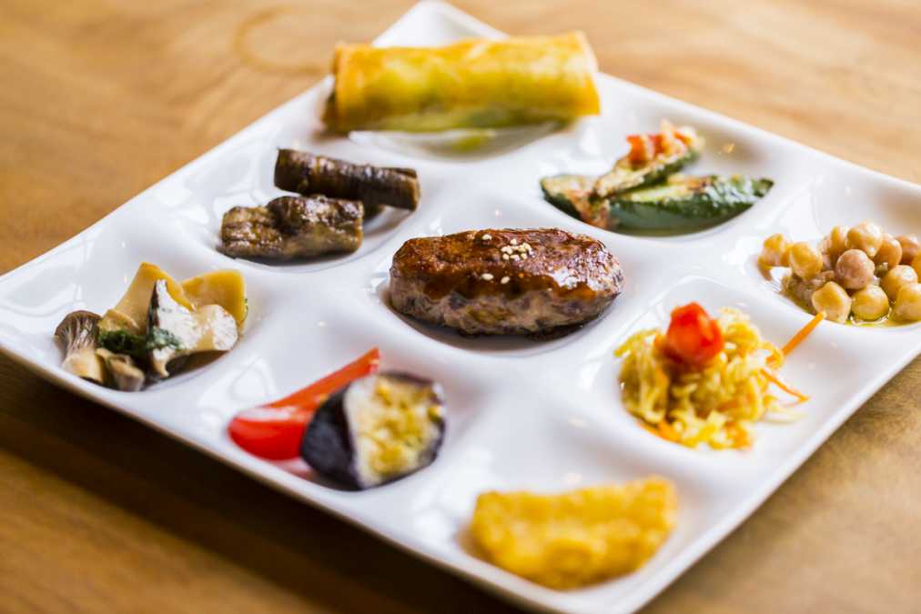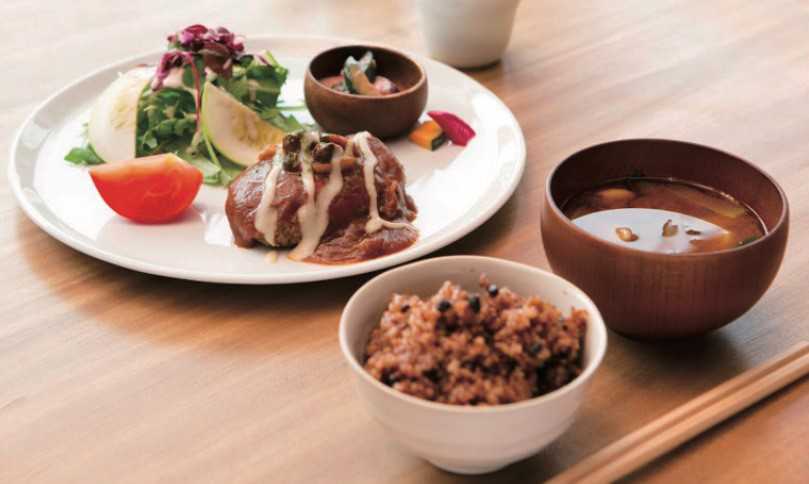 8~3月の期間は「生命の恵みランチ」(3024円)を提供。ハンバーグや春巻きなどのメインと新鮮な野菜をワンプレートにした一品で、日によっておかずは変わりますが、野菜の甘みや旨味を感じられるメニューです。ランチには酵素玄米と味噌汁が付いています。