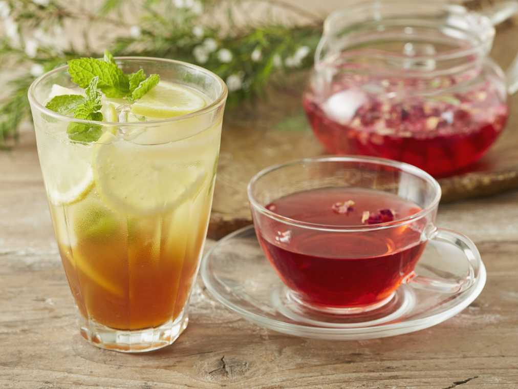 ノンカフェインの「ハイビスカスとローズヒップのフルーツティー(※写真右)」870円は8月30日から通年販売が予定されているので、こちらも楽しみ!