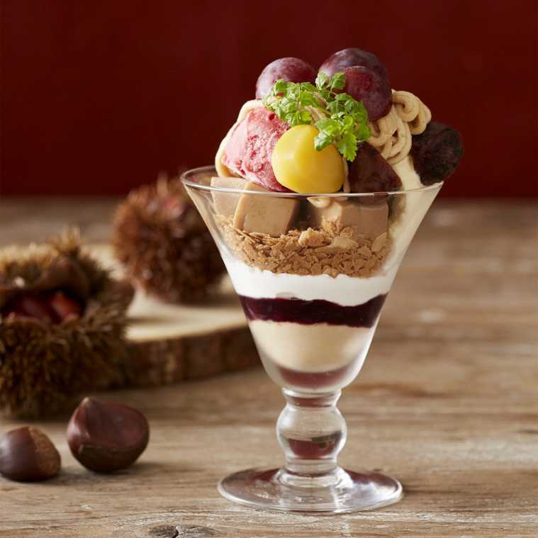 秋の味覚“栗”や“ぶどう”を使用した贅沢パフェ