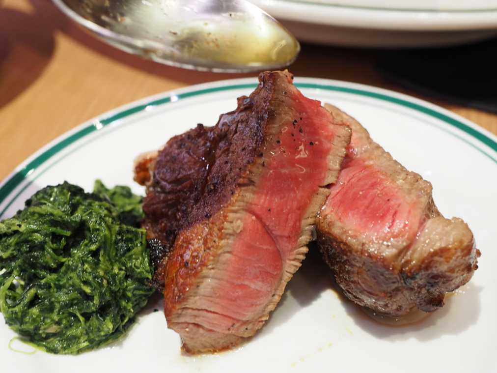 ほうれん草のクリームスピナッチ(500円)はステーキの最高のパートナー。まったりとした口当たりながら、クリームが重くないのでさっぱりいただけます。お肉と一緒に食べるとまた違う美味しさに。