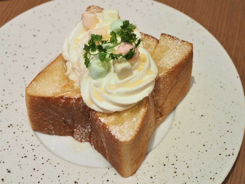 食パンを使ったスイーツも見逃せません。俺のハニートースト(680円)は、ほどよい甘さのクリームが食パンによく合います。厚切りの食パンを味わえるのも嬉しいところ。