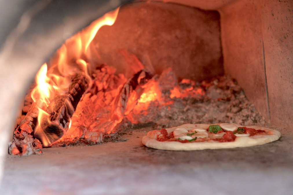 爽やかな秋空の下、本格的な薪窯で焼き上げられる青空ピッツア