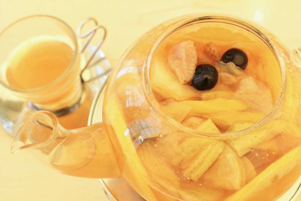シロップを入れなくても、果物だけで十分な甘さ。一杯目はすっきり、柑橘のさわやかな風味が広がります。じっくりと温めているうちに、だんだん味わいが変わってくるのも魅力。ゆっくりと会話をしながらお茶を楽しめます。