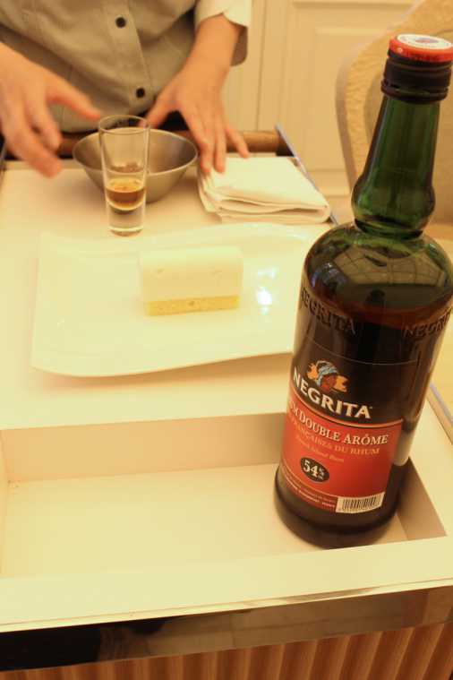 席に運ばれてきたのは、未完成のモンブランとラム酒がのった白いワゴン。なんと目の前でモンブランを仕上げてくれるんです!