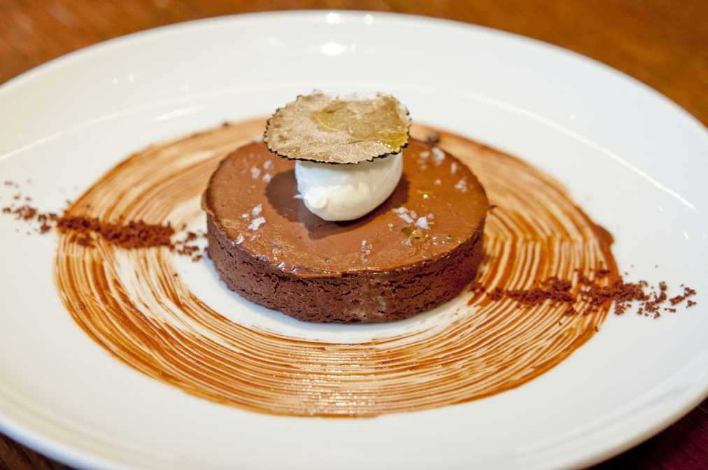「エーシックスティーン」の看板デザート“チョコレートブディーノ”にトリュフを加えた「トリュフ” チョコレートブディーノ ~海塩、上質なオリーブオイルをかけて~」780円(税抜)。トリュフの芳醇な香りが口いっぱいに広がります。