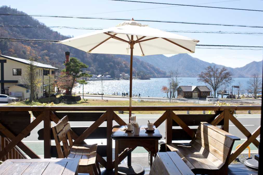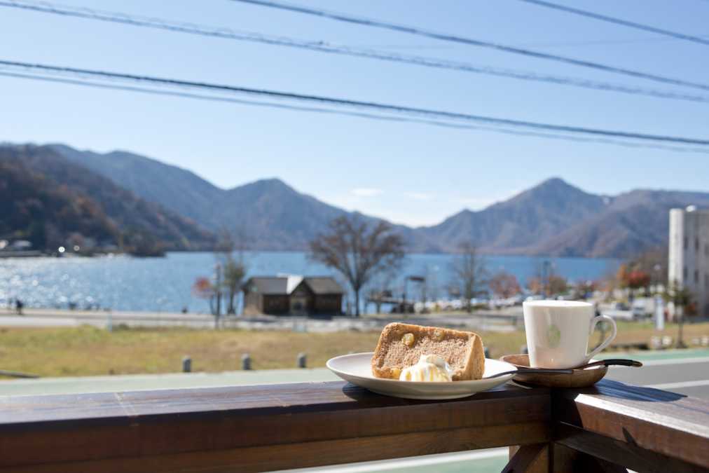 カフェでの特等席はなんといってもテラス席。雄大な山並みを背景に広がる中禅寺湖のパノラマが見渡せます。中禅寺湖はいつ訪れても穏やかで、吹き抜ける風が気持ちいいんです。ぼんやり眺めているだけでもほっと癒されます。