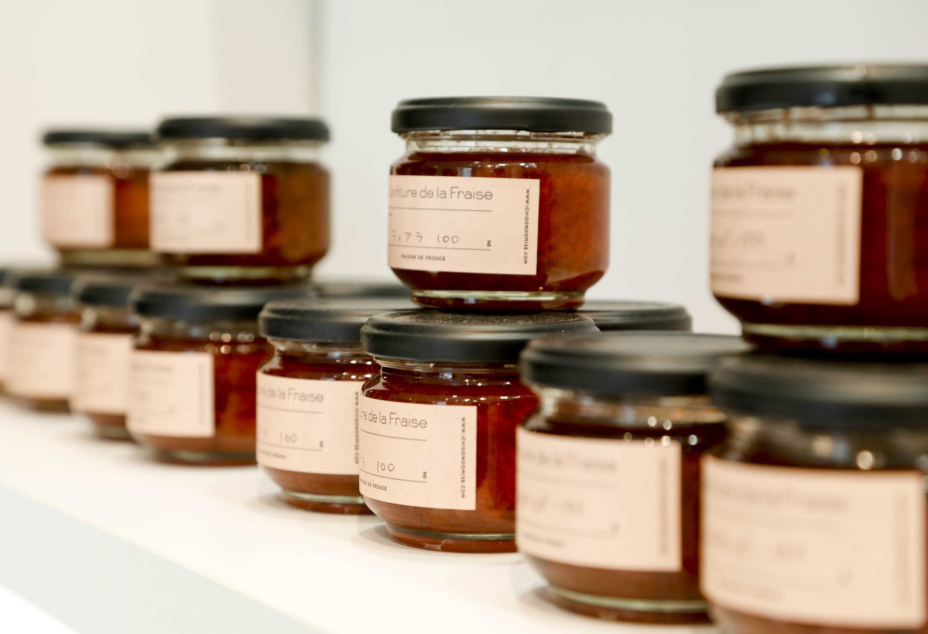 「メゾン・ド・フルージュ」で手作りしているオリジナルジャムは、季節によって使用するいちごが変わります。常時約8種類、それぞれ違う品種のいちごを使っています。