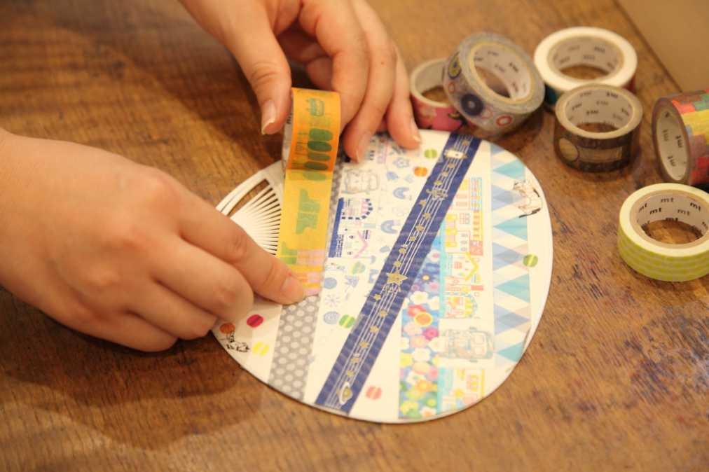 店内奥の体験コーナーでは、うちわ、または紙袋を選び、備え付けのテープで10分間、無料でデコレーションが楽しめます。土・日曜は缶バッジを選ぶことも可能。好みのアイテムでぜひチャレンジしてみては。なお、体験は16時30分最終受付です。