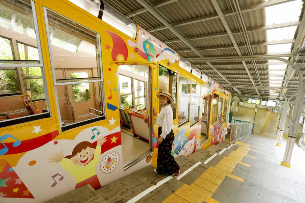 こちらは、宝山寺駅と生駒山上駅間を結ぶ、「スイート」と「ドレミ」。パステル調のメルヘンチックな外観や、カラフルな内装にテンションUP!約40分ごとに運行しています。
