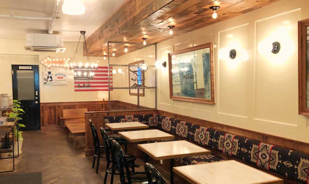 店内はソファ席やカウンター、テラス席までさまざまな席を選べます。ブルックリンをイメージしたスタイリッシュな雰囲気にまとまっていて、インテリアに使われているアイテムは実際にアメリカで買い付けてきたものなのだそう。