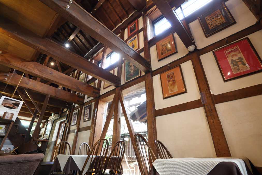 木造の日本家屋にヨーロッパテイストの家具や装飾品が並ぶ店内は、どこか懐かしさを憶えるレトロな雰囲気。壁にはチョコレートに関するアンティークの絵やポスターが並び、眺めているだけでもワクワクします!