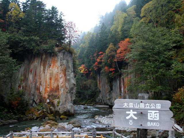 大雪山国立公園の中に位置し、石狩川を挟んで続く峡谷「層雲峡」の中で、もっとも美しい峡谷美を見せるといわれる場所が「大函・小函」。大雪山の噴火で堆積した岩が、石狩川の流れに侵食されてできたもので、前後の岩壁が屏風のように連なる様は壮観です。