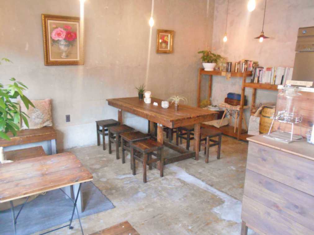 心地よい音楽が流れる店内は、木で作られたテーブルやイス、観葉植物が並び、温かみのある空間が広がります。