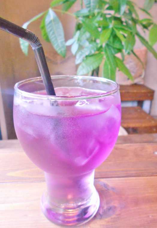 ドリンクをかき混ぜると、ブルーハーブの成分がエルダーフラワーのビタミンに反応し、濃いピンク色に変化!ちょっとした魔法みたいで、とっても楽しい!