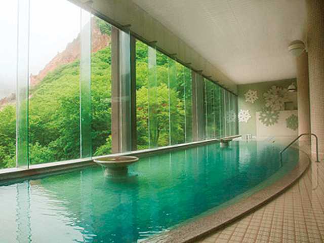 登別温泉で最も古い温泉宿「第一滝本館」は、7つの源泉から湯を引き、その圧倒的な湯量で、広さ1500坪の大浴場に35種類ものお風呂を構えています。日帰り入浴にも対応していて、効能の異なる5種の泉質を、ここだけですべて堪能できるのがうれしいところ。