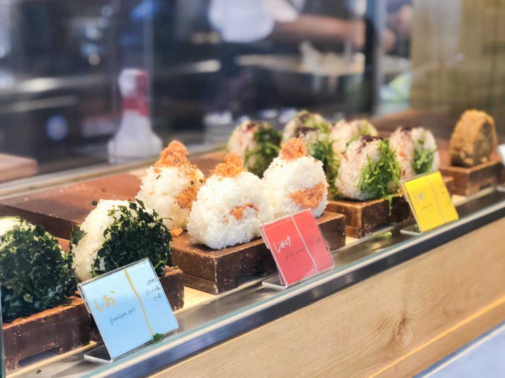 店内に入ってまず目に飛び込んできたのは、ショーケースにずらりと並んだおにぎり。「ミソジュウ」では味噌汁のほかに、工夫を凝らしたおにぎりもいただくことができます。