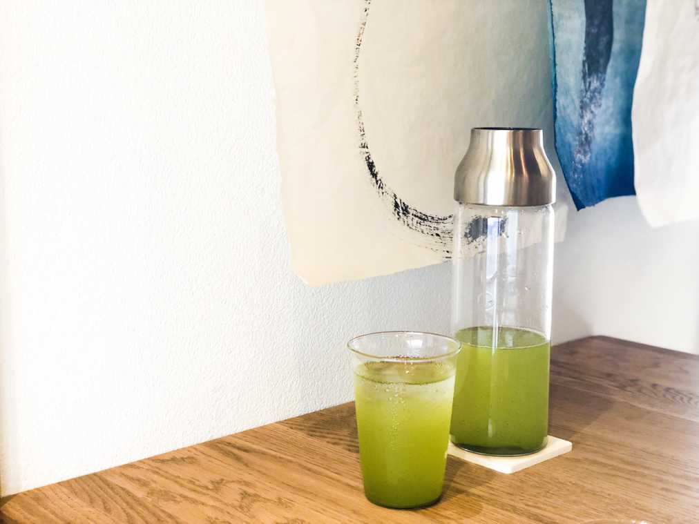 おかわり自由のお茶にもこだわりが。「芽茶」というもので、限られた期間にしか採れない新芽のみを使用した贅沢なお茶です。とてもさわやかな味わいで、ついついたくさんおかわりしてしまう!