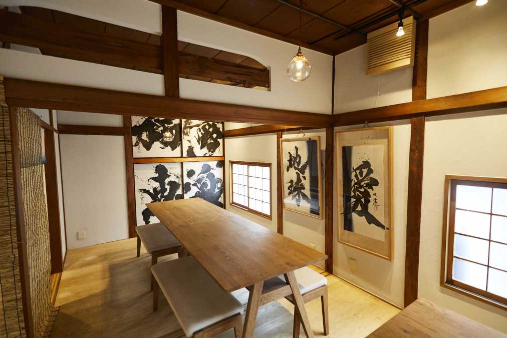 実は「ミソジュウ」は書道家・武田双雲さんが結成した「TEAM地球」というグループがプロデュースしているお店ということもあり、2階にはたくさんの書の作品が飾られています。