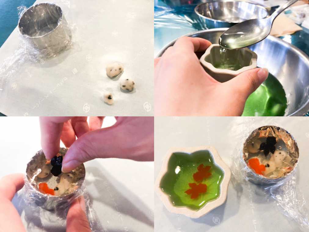 体験をした講座のテーマは「夏祭り」。4種類の和菓子で日本の定番行事、夏祭りを表現していきます。まずは寒天を使った“錦玉”という手法で金魚の和菓子作りにチャレンジ!