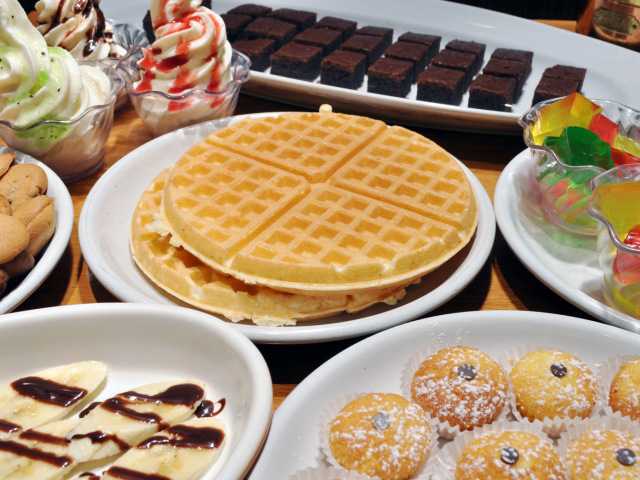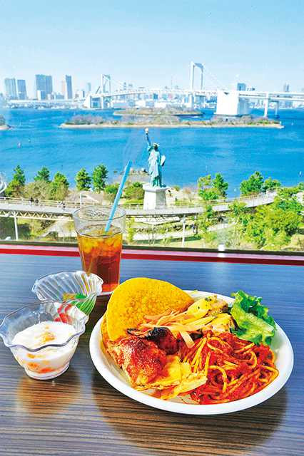 世界の料理が食べ放題のビュッフェレストラン。店内からは東京湾とレインボーブリッジが一望でき、眼下には「自由の女神」が見下ろせて、まるでNY気分。個別にサーブしてくれるローストビーフや、焼きたてワッフルなどのスイーツも充実し、贅沢な休日ランチを満喫できます。