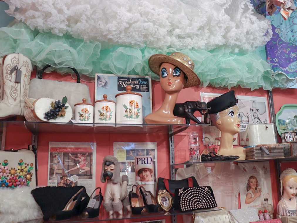お洋服だけでなく、ちょっと奇抜なサングラスやハットなどの小物のラインアップも。天井からつり下げられたチュールスカートなどのディスプレイも充実していて、細部まで見応えがあります。キッチュな商品を眺めているだけでも、楽しい気分になるでしょう。
