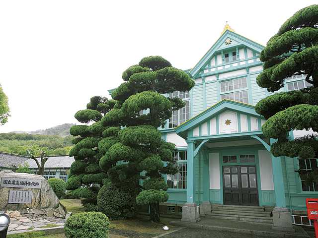 粟島港についたらまずここへ。粟島海洋記念館、研修棟、多目的広場、テニスコート、キャンプ場などを備えた公園。もとは明治30年にできた日本初の海員養成学校で、ここから多くの外洋船員が巣立ちました。記念館は登録有形文化財に認定されていて、レトロな雰囲気の旧校舎は記念撮影の背景にぴったり。当時の練習船や船具、海運の歴史に関する資料などを展示していて、海洋ロマンの世界にひたることができます。