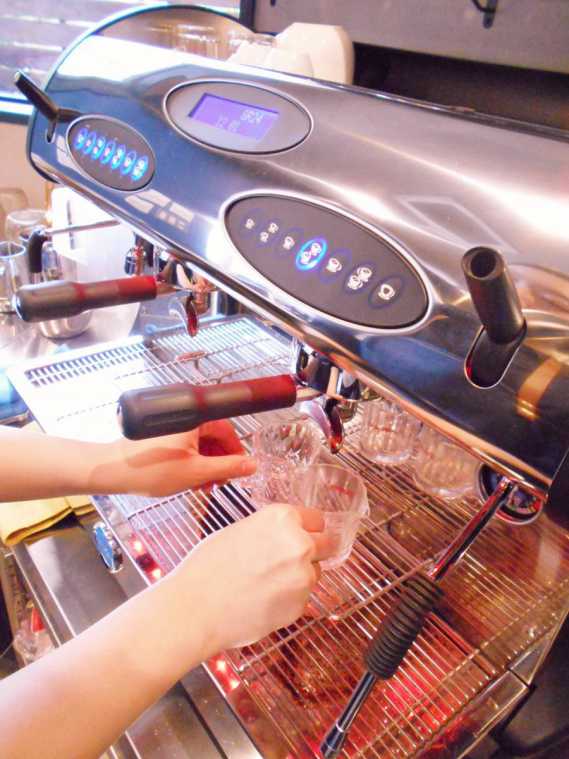 それではさっそくお目当のフルーツラテをオーダーします。今回はお店で1番人気のイチゴ味をチョイス!まずは、イタリアの老舗コーヒーマシンブランド「カリマリ」のマシーンでエスプレッソを抽出。この「カリマリ」ですが、コーヒーマシン界のフェラーリと呼ばれていて、お値段も相当なんだとか。