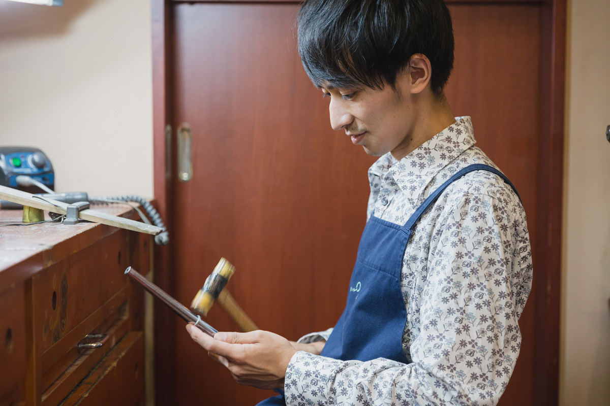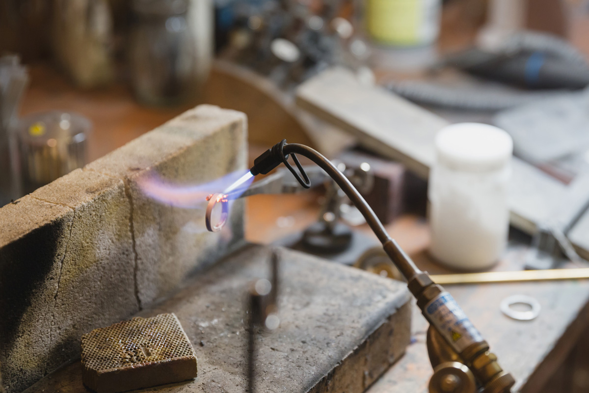 くっつけた棒のつなぎ目をしっかりと固定するために、つなぎ目にロウ材を付けてバーナーの火で固めます。まるで化学実験のようですね。慣れない作業ですが、職人さんが分かりやすく案内してくれるので、比較的スムーズにできますよ。