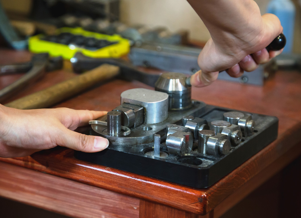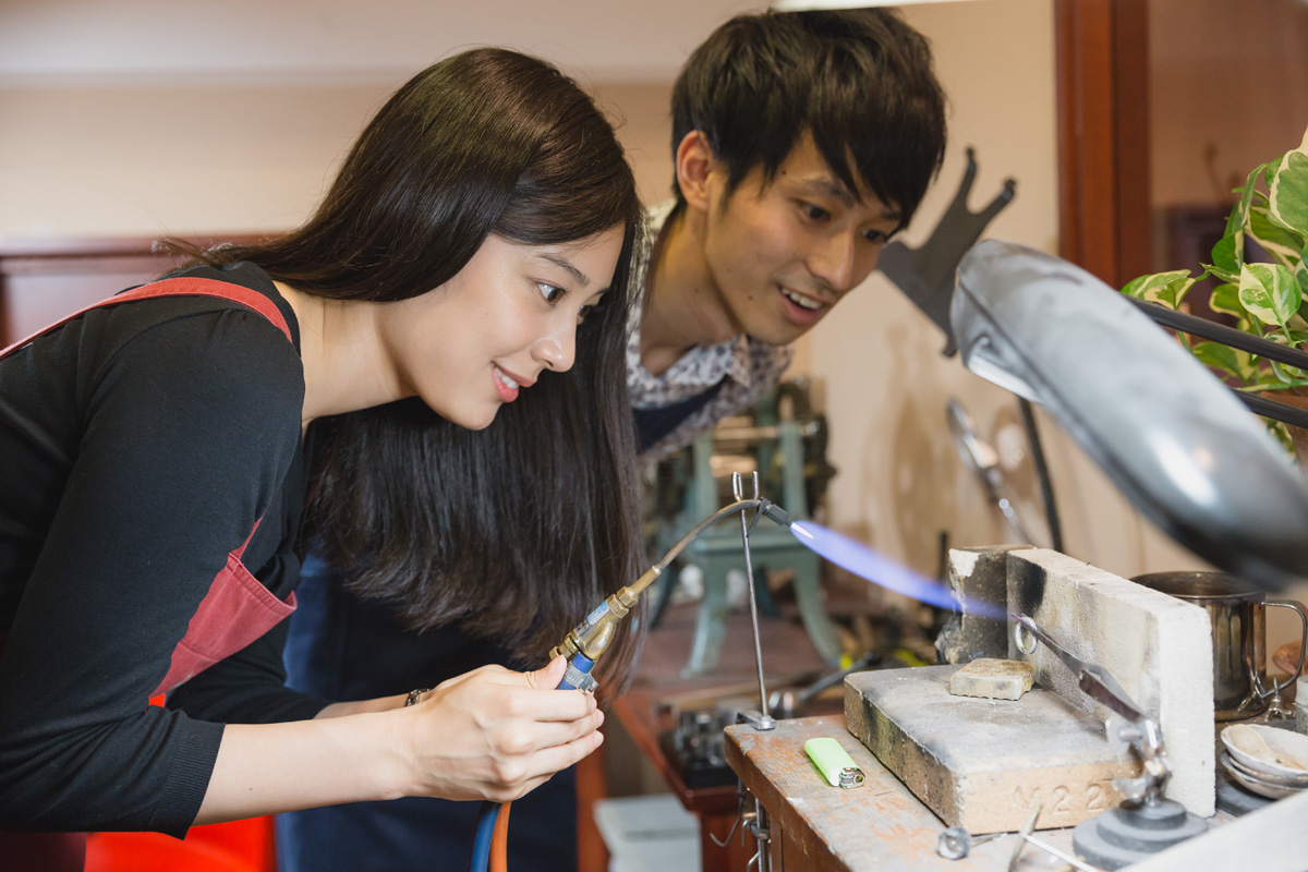 具体的にデザインが決まったら、まず指輪のサイズを測って確認してから、いよいよペアリング作りにトライ。DIYの工程では、実際に工房の職人が一から教えてくれるので、初心者でも安心です。