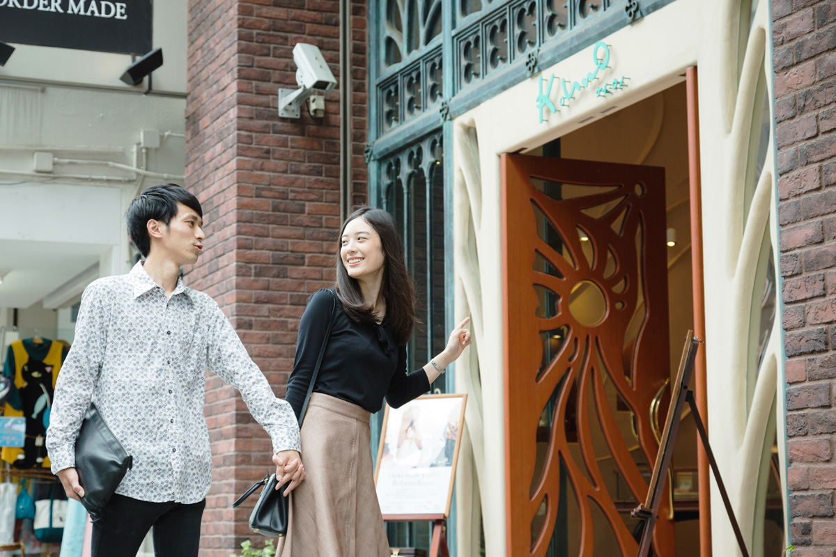 まずは2人の「記念日デート」など、きっかけを見つけて、お揃いのペアリングをDIYしてみない?と提案してみましょう。横浜元町ストリート内にある「ケイウノ横浜元町店」なら、近くに人気のレストランや洋館など魅力的なスポットが多いので、デート途中に立ち寄るのにぴったり。ちなみにDIYしに行く時は、事前の予約を忘れずに。
