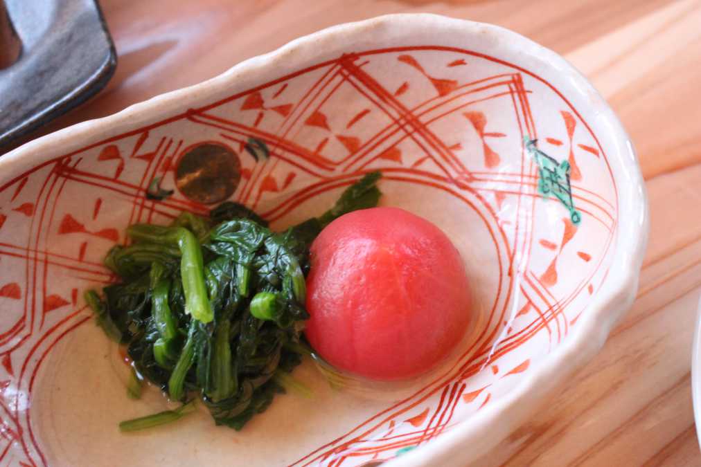 お通しは、しっかりとダシがきいたトマトおでん。トマトの酸味に負けないようなダシがおいしい一品です。