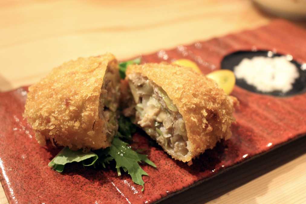 たっぷりのフォアグラがメンチカツにINしたフォアグラメンチ1200円。肉汁とフォアグラの旨みがよくあいます。