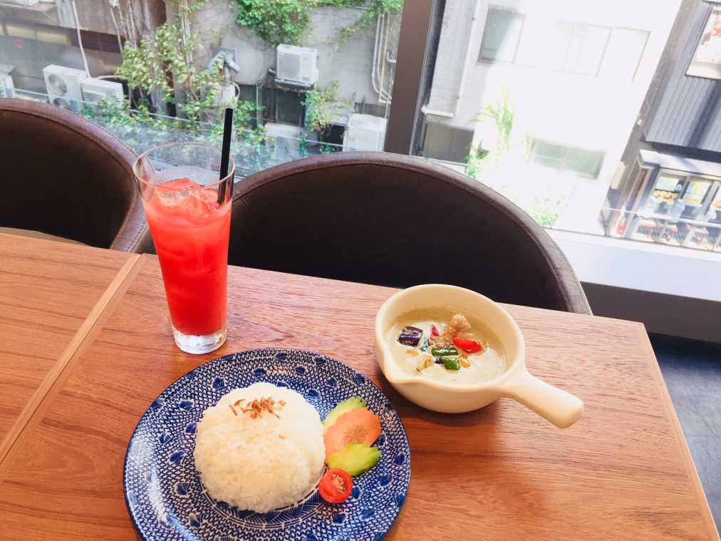 タイ&アジアンビストロ「Spice Lip(スパイス リップ)」のおすすめは、具材を2時間もかけて炒めて作った本格派ながら日本人の口に合う「グリーンカレー(1296円)」とさっぱりとした甘さがくせになる「生スイカジュース(594円)」の組み合わせ。まだまだおすすめはたくさんあるそうなので、店員さんに質問してみてください。快く教えてくれますよ。