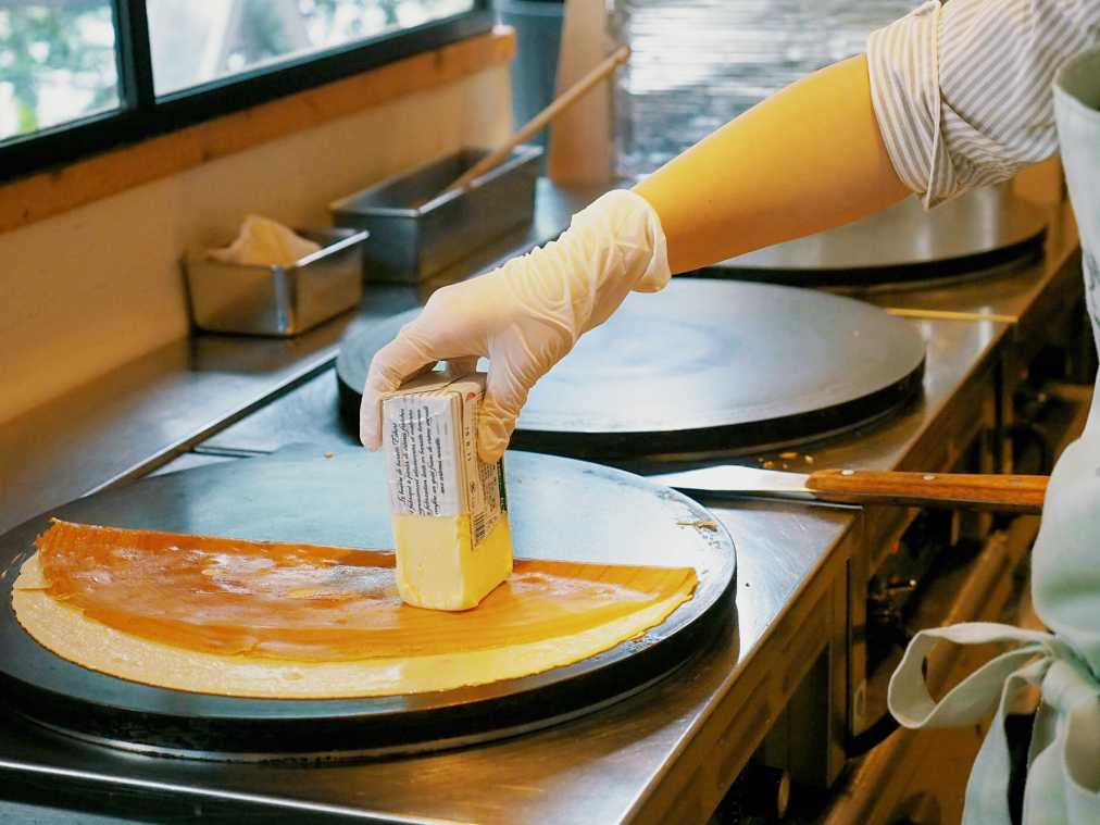 そんな「gelato pique cafe creperie」によるクレープの魅力は、シンプルながらもこだわりが詰まった生地!香り豊かなフランス産の小麦粉に、同じくフランス・エシレ村で作られている高級なバターを贅沢に使っています。