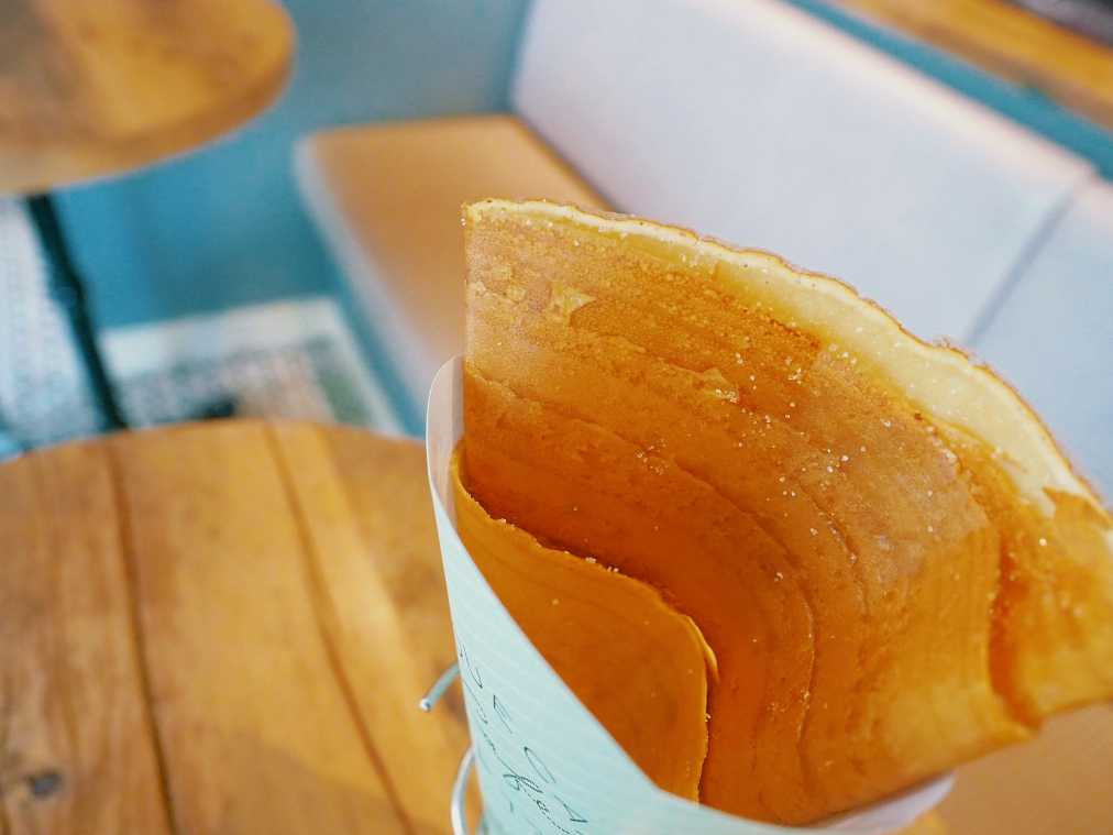 なんと、フルーツやホイップクリームといった定番のトッピングは一切なし!生クリームたっぷりのクレープに見慣れていると、シンプルなそのたたずまいに少し驚きますが…ワクワクしながら、ひと口!