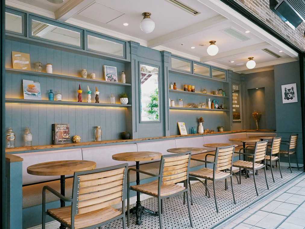 ブルーグレーをベースとしたシックな外観に、「gelato pique」らしいほんのり甘いインテリアがキュート!さんさんと日差しが降り注ぎ、風が入る気持ちのいい空間になっています。