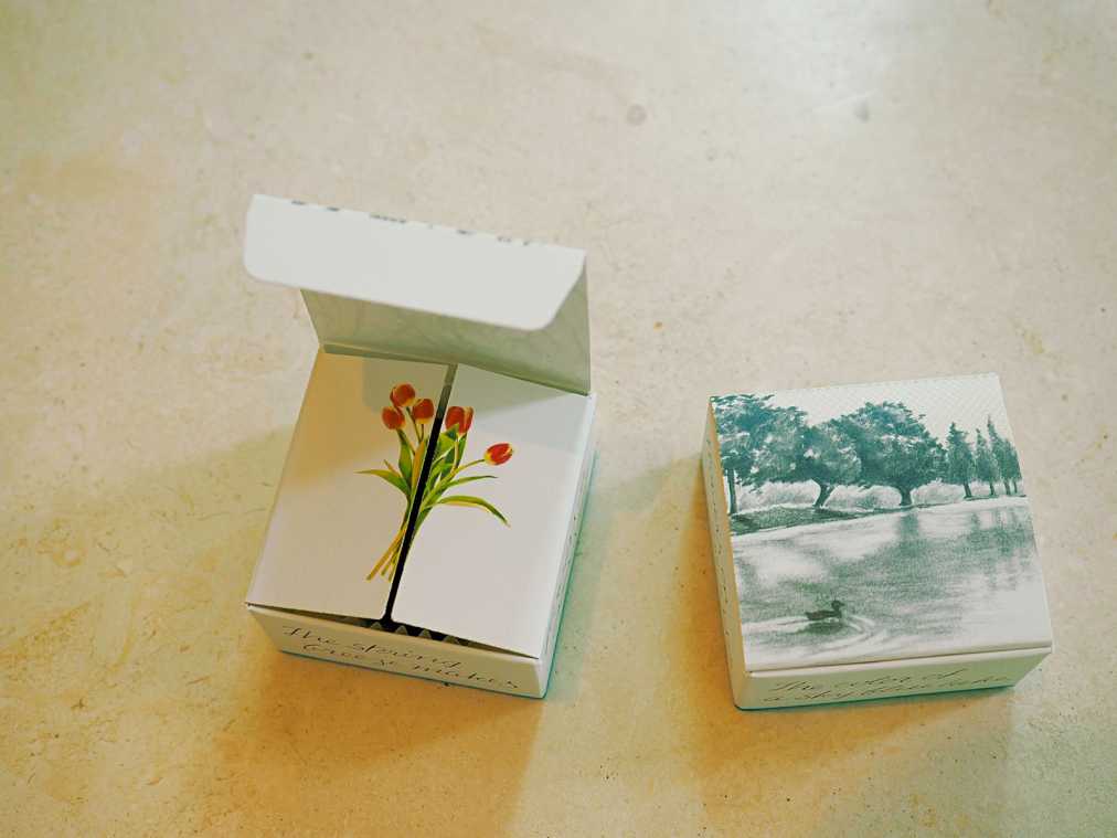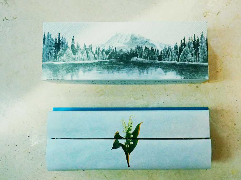 まずご紹介したいのが「ショコラテリーヌ ナチュール」(1944円)。このパッケージのかわいさに目を奪われない女子はいないはず!山の麓に広がる湖が描かれたロマンチックな箱を開くと、そこには繊細なスズランの花が1輪。まるで絵本のページをめくっているかのような気持ちになります。