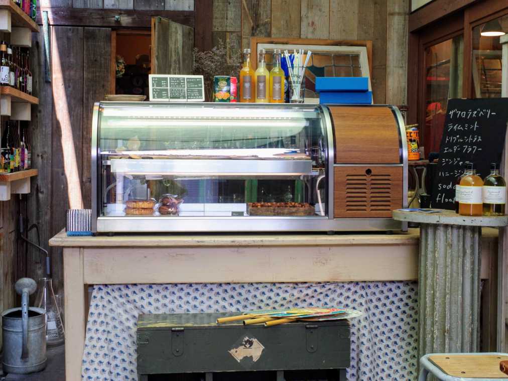 お隣にあるアパレルショップの常連だったというオーナーの岩下さん。この場所に惚れこんで、好物のキッシュ&タルト専門店をオープンさせたそう。レトロでかわいい店内のショーケースには、フルーツたっぷりのタルトや熊本野菜いっぱいのキッシュ、艶やかなカヌレが並びます。
