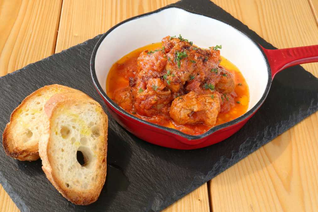 写真のピリッと辛い「チキンのガーリックトマト煮」をはじめ、ハンバーグやボロネーゼも、タミィズのヴィーガンメニューは、お肉好きでも大満足できるものばかり。