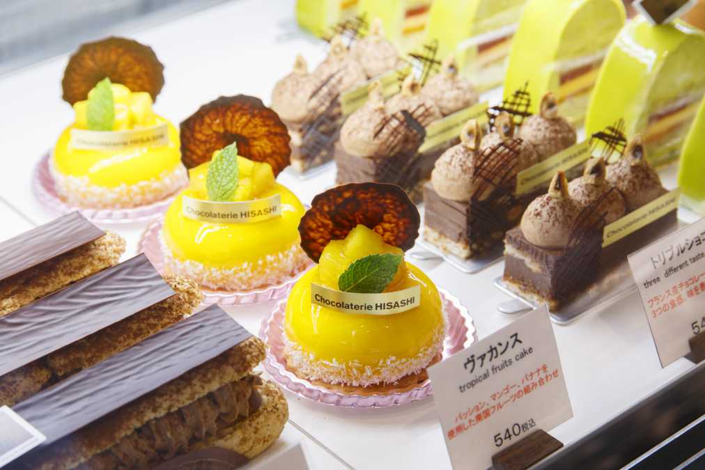 ショーケースには、チョコレートやムースを使ったプチガトーも並びます。